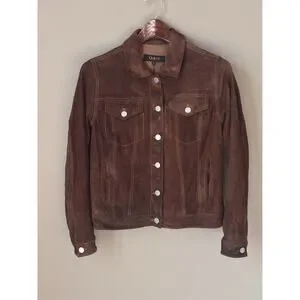 Quince Suede Trucker Jacket Brown Goat Leather Great Patina XS/S READ