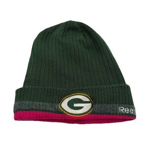 Reebok Green Bay Packers Beanie Hat Cap Breast Cancer Awareness NFL Football. It is in good used condition, with no stains or rips noted. Please carefully review all photos for condition details.