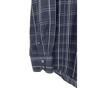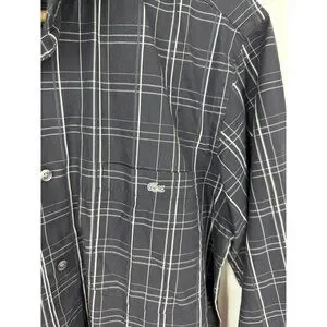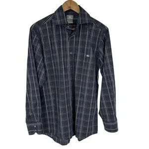 Lacoste Mens Navy & White Plaid Long Sleeve Button-Up Shirt Size 40 M