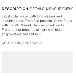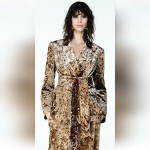 ZARA ZW COLLECTION GOLDEN METALLIC THREAD VELVET BLAZER WITH BELT πππ