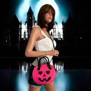 Pink & Black Halloween Jack-O-Lantern Pumpkin Crossbody Top Handle Purse Bag