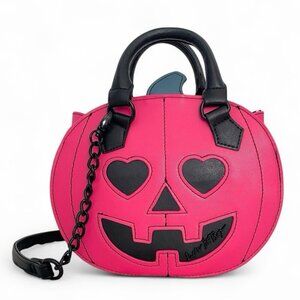 Betsey Johnson Pink & Black Halloween Pumpkin Crossbody Top Handle Purse Bag NWT