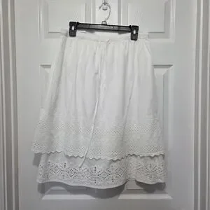 Studio West Apparel White Embroidered Eyelet Cotton Tiered Midi Skirt Size L