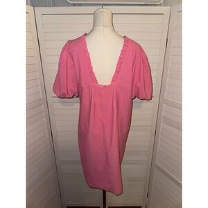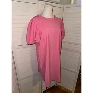 Joy Joy Shift Dress Womens Pink Ruffle Neck Puff Sleeve V-Back Size Large