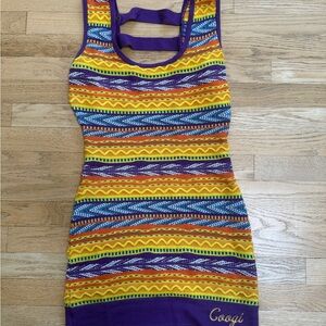 Absolutely iconic, rare Coogi mini dress in like new condition. This dress is a classic 3D knit Coogi in the most gorgeous colours - it’s a knit so it stretches to your body. Measured lad flat: Bust: 16.5 Waist: 13.5 Hip: 16.5 Length: 32