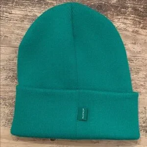 Cozy bright green knit beanie with Athleta logo. Ideal for chilly days.