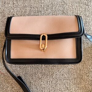 Elevate your style with this chic black and tan crossbody bag. Perfect for any occasion, it combines elegance with practicality.