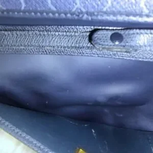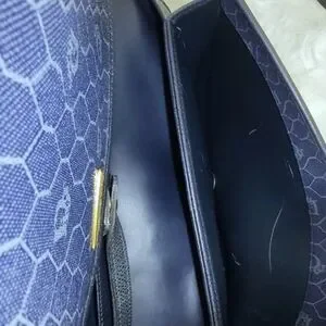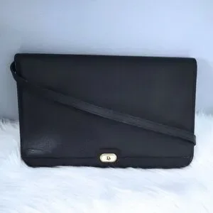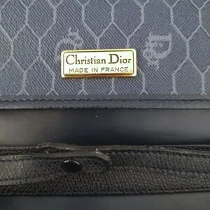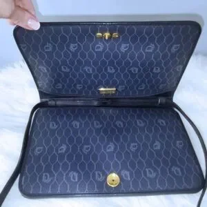 A timeless vintage Dior piece from the late 1970s–1980s era, featuring the house’s classic monogram jacquard interior and sleek navy leather exterior.