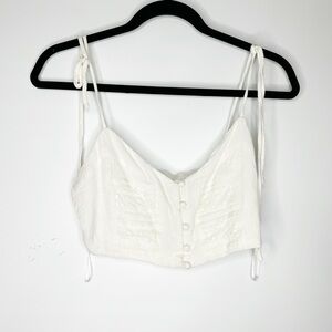 This chic camisole from Princess Polly features a cream hue with a stylish buttoned front and a trendy tie detail. The cropped design and camisole sleeves make it perfect for a casual, summery look.