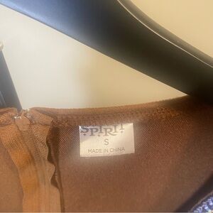 Super cute Indian princess costume with turquoise trim and plenty of fringe. Shoulders are exposed with a zipper up the back.