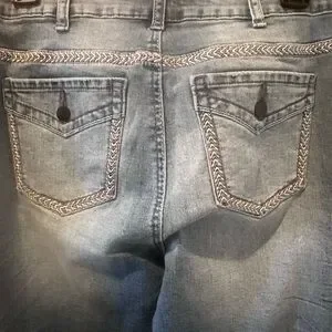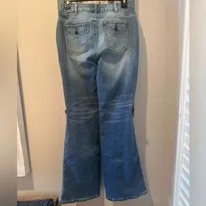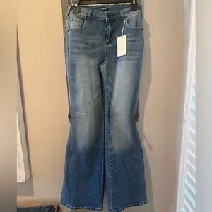 ❄️ NWT Flamingals Boho Embroidered Flare Jeans Medium Wash Bell Bottoms Size M