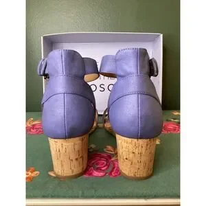 Willowbrook ankle strap sandals feature a stylish faux cork wedge and a vibrant mid blue textured upper. Designed with comfort in mind, these open-toe shoes include a secure buckle closure and a cushioned footbed for all-day wear. The classic wedge silhouette provides a stable lift, making them a versatile choice for both casual outings and dressier occasions. These shoes are in brand new condition and come with the original box.