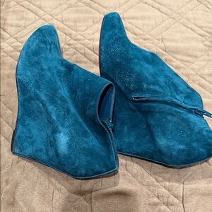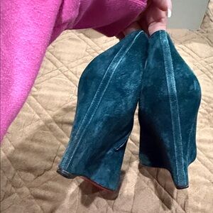 Elegant suede ankle boots in a striking Green Perfect for adding flair to any outfit. I need to get rid of my designer shoes, i can no longer wear. They run small size 39 but they will fit a 7 or 7.5