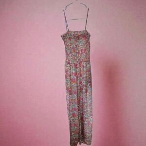Beautiful Pink Lily floral smocked jumpsuit in size Small.