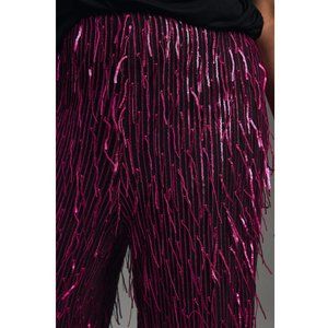 Maeve Fringed Sequined Wide-Leg Pants from Anthropologie in the color Plum (dark pink or purple). Size women's 20W (Plus).