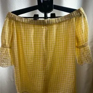 Old Navy Yellow Gingham Off-Shoulder Blouse, Size XS