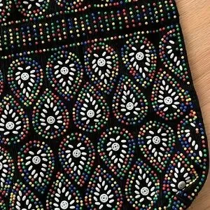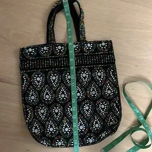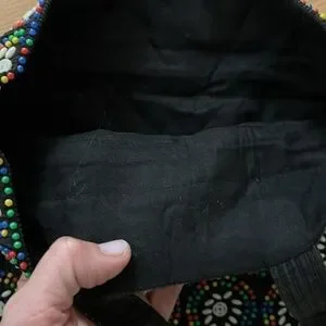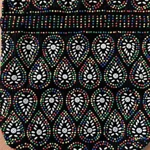 Vintage Beaded Tote Bag Purse Retro 60s 70s Rainbow Plastic Beads Black Funky