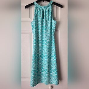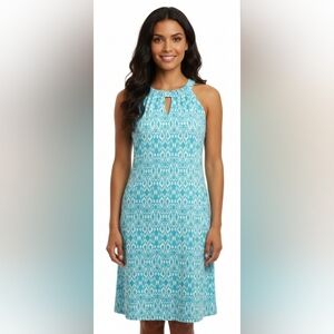 NWOT Jude Connally Turquoise/White Sleeveless Patterned Dress Size S