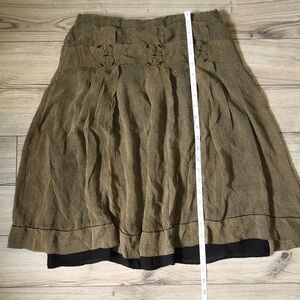 Women’s Vintage Studio M Petite Brown Yellow Pleated Pattern Silk Skirt size 4P