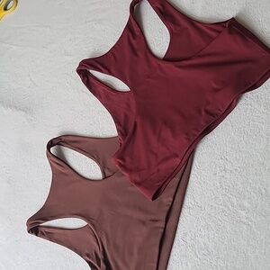 Quince Ultra-Form Scoop Neck Longline Bra Redwood Brown Plum Racerback Lounge L