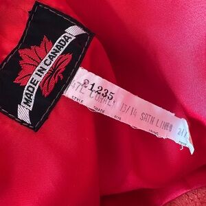 Vintage Made in Canada Red Leather Gold button with vintage buttons featuring the double eagle emblem of Archid Avst Dux Burg Co Tyr from 1780 and buckle with a FUN collar!