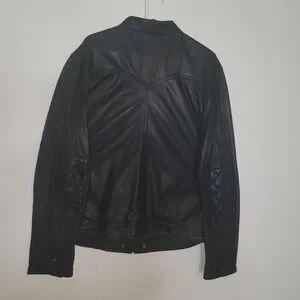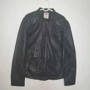 Make a bold statement with this premium cafe racer Jacket, crafted from 100% genuine black lambskin leather for a sleek, timeless look. Designed with both edge and elegance, it features a full front zipper closure and two lower diagonal zipper pockets and one horizontal chest zipper pocket, which add functionality and flair. Quilted detailing on the shoulders & elbows, enhances its rugged appeal while offering added comfort and structure. Also, cuff zippers for added versatility and comfort. Whether you're dressing up for a night out or adding attitude to your everyday wardrobe, this jacket delivers unmatched durability, comfort, and modern sophistication.