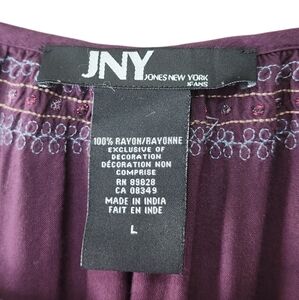 JONES NEW YORK plum purple peasant style embroidered blouse, size L