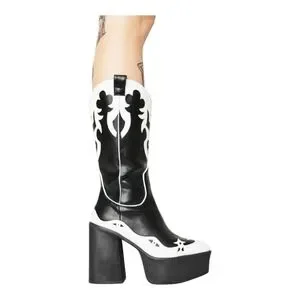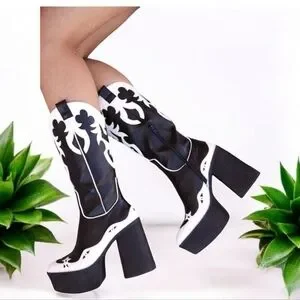 Current Mood stylish black and white Women's Platform heeled cowboy Boots