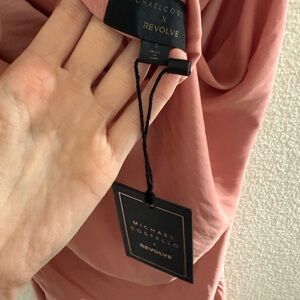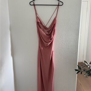 Elegant pink dress with draped neckline. Spaghetti straps. Perfect for any occasion.