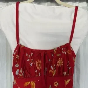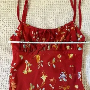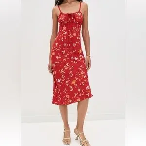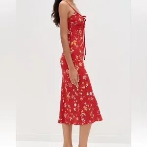 Keywords: Reformation Juliette Dress Red Floral Midi Bias Cut Cottagecore Romantic Sustainable Made in USA Borsa Print Date Night Summer Wedding Guest