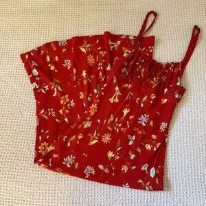 This fiery red floral print flatters every skin tone and makes the perfect statement for vacations, weddings, or date nights.