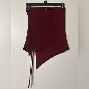 Chic asymmetrical strapless top by Garage. Deep red hue. Stylish and versatile.
