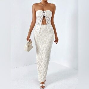 Elegant strapless two piece lace set. Ideal for special occasions. Sophisticated and modern.