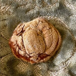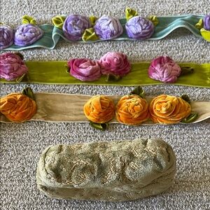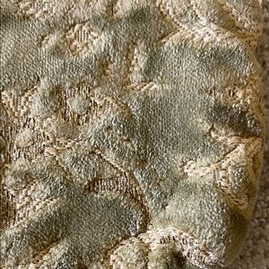 Early piece when Magnolia Pearl was made in the USA…..Unique textured pouch with floral design. Celadon & orange hues〰️