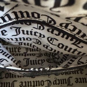 Interior features iconic Juicy Couture logo lining with zip and slip pockets.