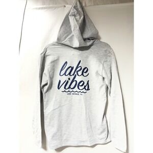 Lake George NY Lake Vibes Hoodie Heather Gray Medium Crossover Neck Pullover
