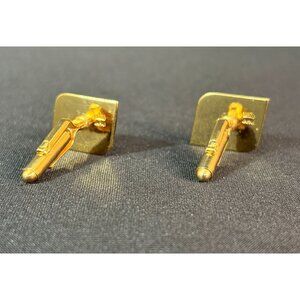 Vintage Amita Japan Damascene Bamboo Leaf Gold Cufflinks Kyoto