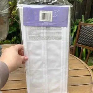 Double-sided organizer with 48 clear pockets. Swivel hook for easy hanging. Ideal for jewelry storage.