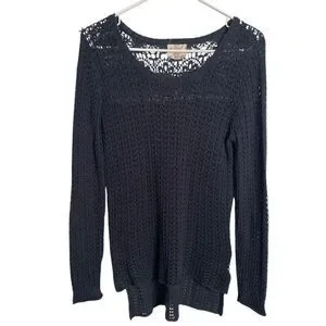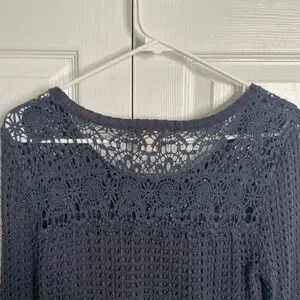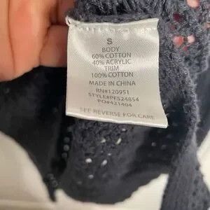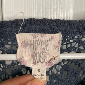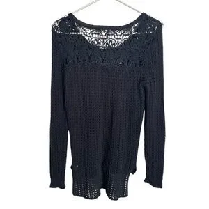 Hippie Rose Womens Crochet Open Knit Sweater S Navy Blue Retro Fishnet Pullover