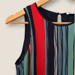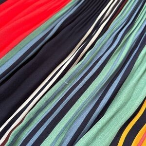 Colourful striped dress. Dress is fully lined. Size tag is missing, fits like a M. Please check measurements. Some small loose threads/pulls, see photos. Good condition otherwise.