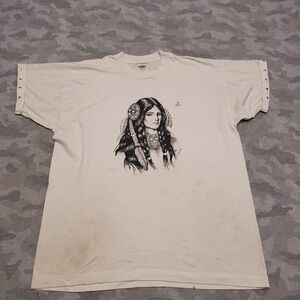 Vintage Fruit Of The Loom Shirt Mens XL Beige Native Short Sleeve Single Stitch