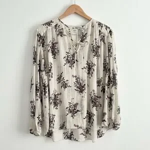 Aritzia Wilfred Floral Flowy Purple Cream Blouse