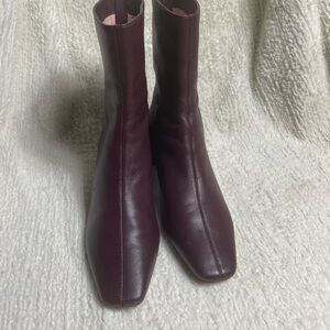 J.Crew Vintage leather Burgundy center seam ankle boots back zipper SZ11