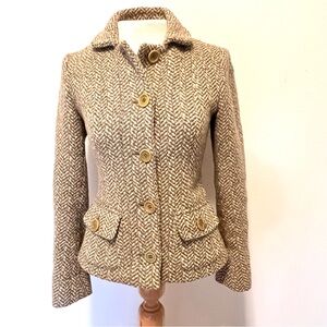 Weekend Max Mara Wool Tweed Blazer Jacket Herringbone Tailored Fitted Size 2