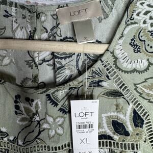 LOFT Outlet XL Green Floral Short Sleeve Blouse Boho Lightweight NWT