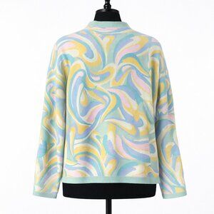 Maeve Anthropologie Carys Swirl Mock Neck Sweater Sky Blue Pastel M