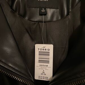 Stylish Torrid black faux leather jacket with fringe detail. Adds flair to any look. Butter soft and beautiful! Torrid size 3. New with Tags!