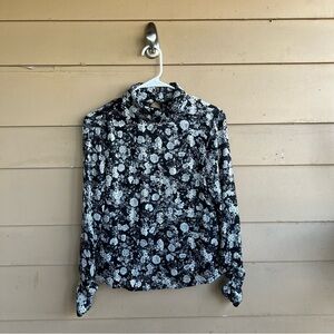 Zara Black White Floral Chiffon Long Sleeve Blouse Size XS
