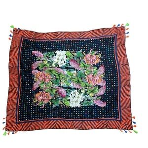 NWT Anthropologie Blank Bl^nk London floral rectangle scarf head wrap tassels