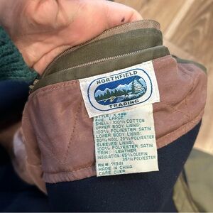 Vintage men’s canvas chore coat leather collar large barn work long oversized